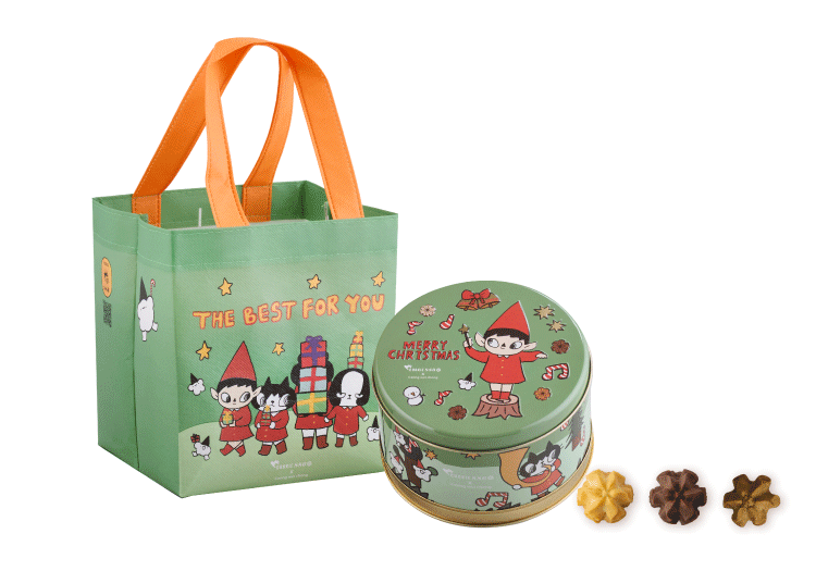 旋轉綠色罐身就會發出美妙的《Santa Claus is Coming to Town》的音樂。此音樂盒版提供單層曲奇,內容物同小盒系列。